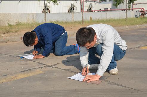 參賽員工按班分為四組,每組4人進(jìn)行接力賽跑。這并不是普通的接力賽跑,其中還包括知識競答。