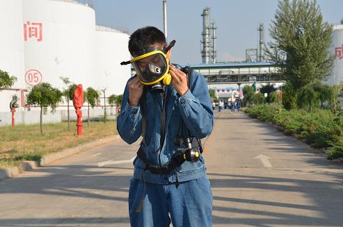 只見起跑線上,已有兩名參賽隊員做好了起跑準(zhǔn)備,在一聲口令后,隊員奮力奔跑,將接力棒傳到下一名隊員手中,該名隊員除了賽跑,還需要回答早已準(zhǔn)備好的專業(yè)知識問題。答題完畢后,隊員繼續(xù)將手中的接力棒送到下一名隊員手中,以此類推。最后一名隊員跑到終點后,還需背上空氣呼吸器,比賽方才結(jié)束。